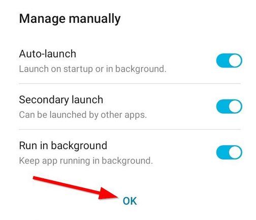 – Mantenga todas las opciones activadas y toque "OK"