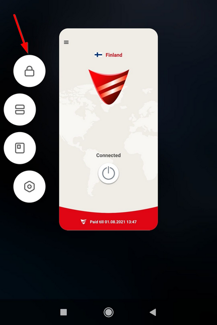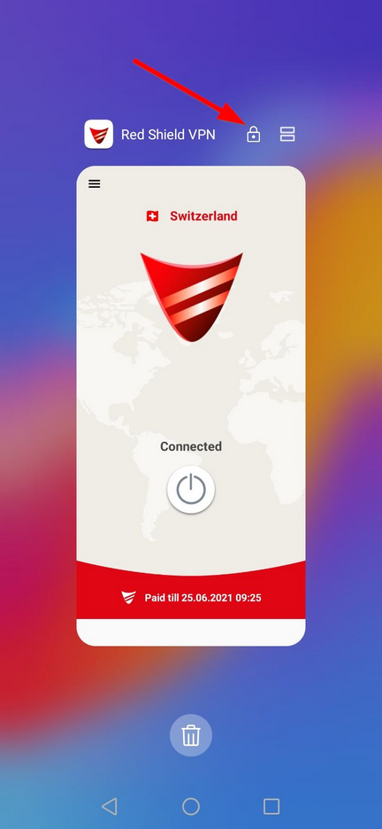 1. Fijar la aplicación. Asegúrese de que aparezca un candado sobre la aplicación Red Shield VPN en el menú de aplicaciones recientes.