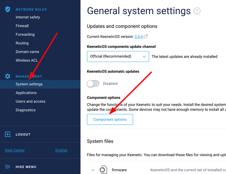 2. Abra la interfaz del router. Seleccione el menú "Configuración del sistema" y haga clic en "Opciones de componentes".