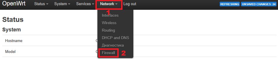 10. Go to Network → Firewall: