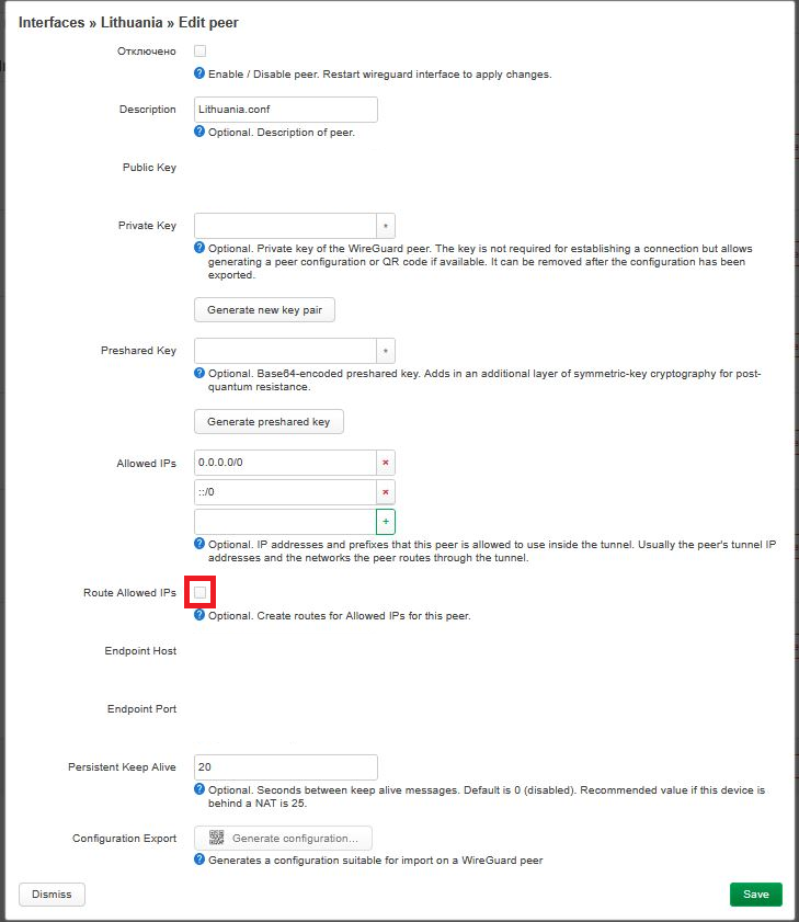 8. Enable the Route Allowed IPs option: