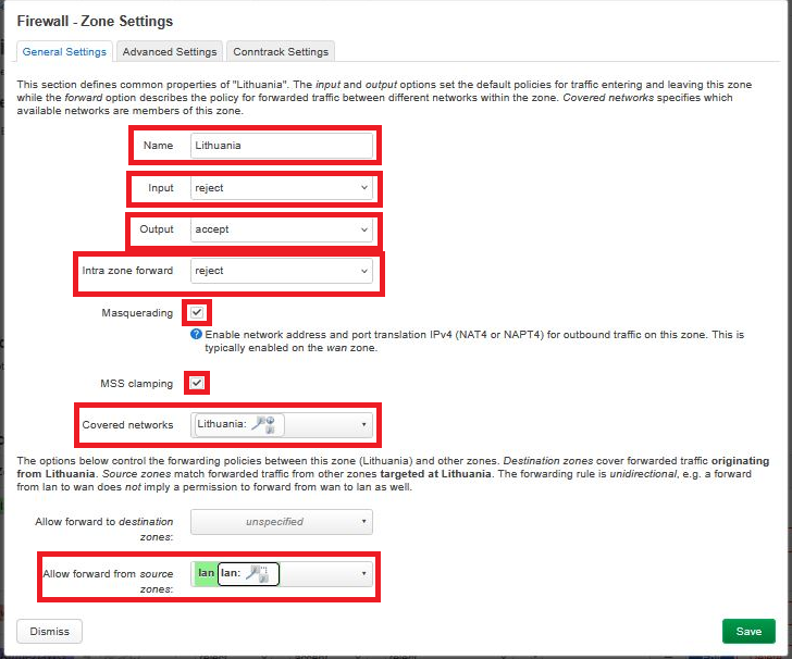 In Allow forward from source zones, select the lan zone