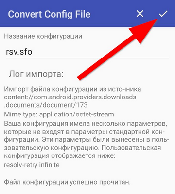 3. Запустите установленное приложение «OpenVPN for Android» и нажмите кнопку добавления профиля («+»). Затем, нажмите кнопку «Импорт».