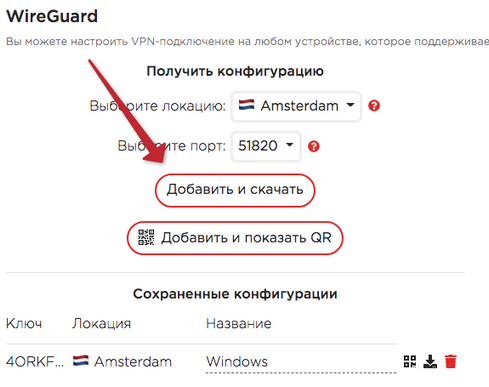 Затем выберите локацию и порт, по которым вы хотите подключиться, и нажмите «Добавить и скачать».