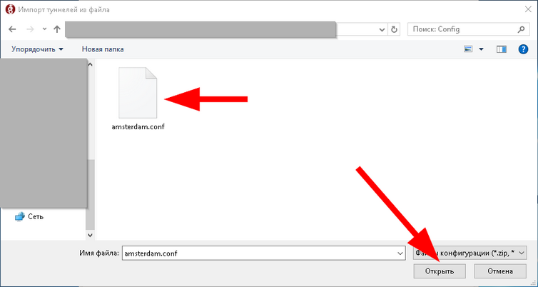 4. Выберите файл, который был скачан из конфигуратора WireGuard.