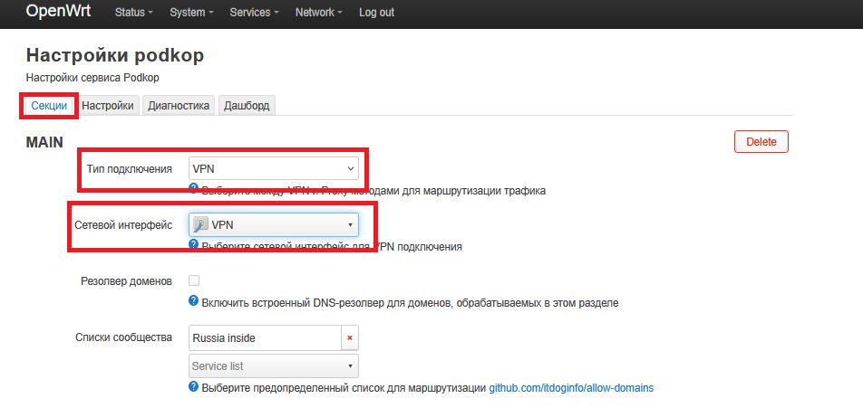 Podkop - это утилита для OpenWrt, предоставляющая удобный веб-интерфейс для управления VPN по различным протоколам, в том числе AmneziaWG 2 и VLESS.